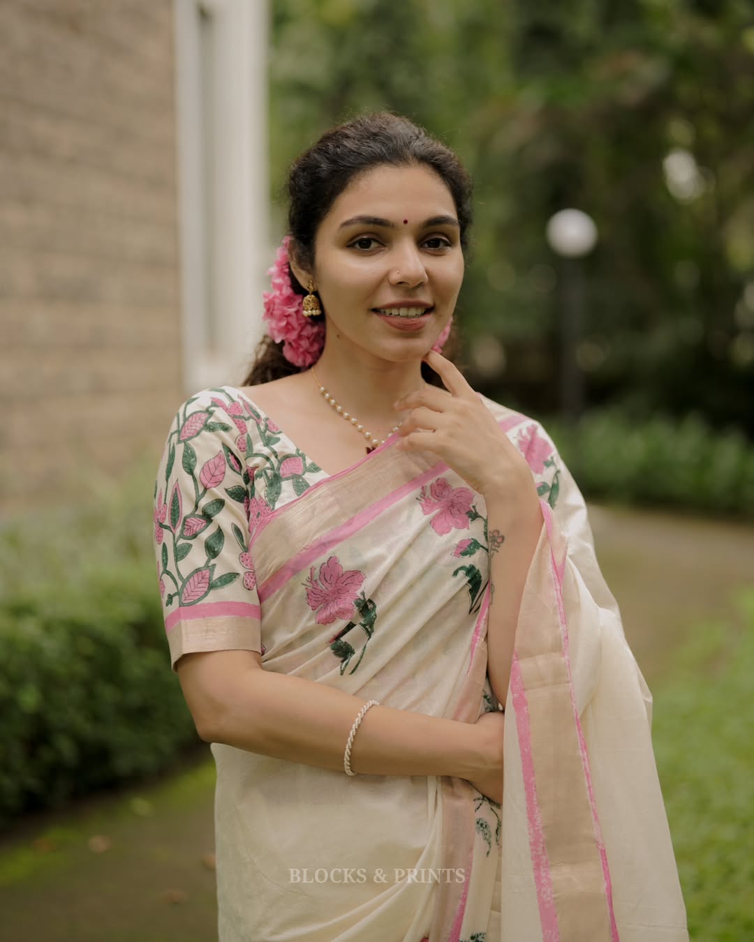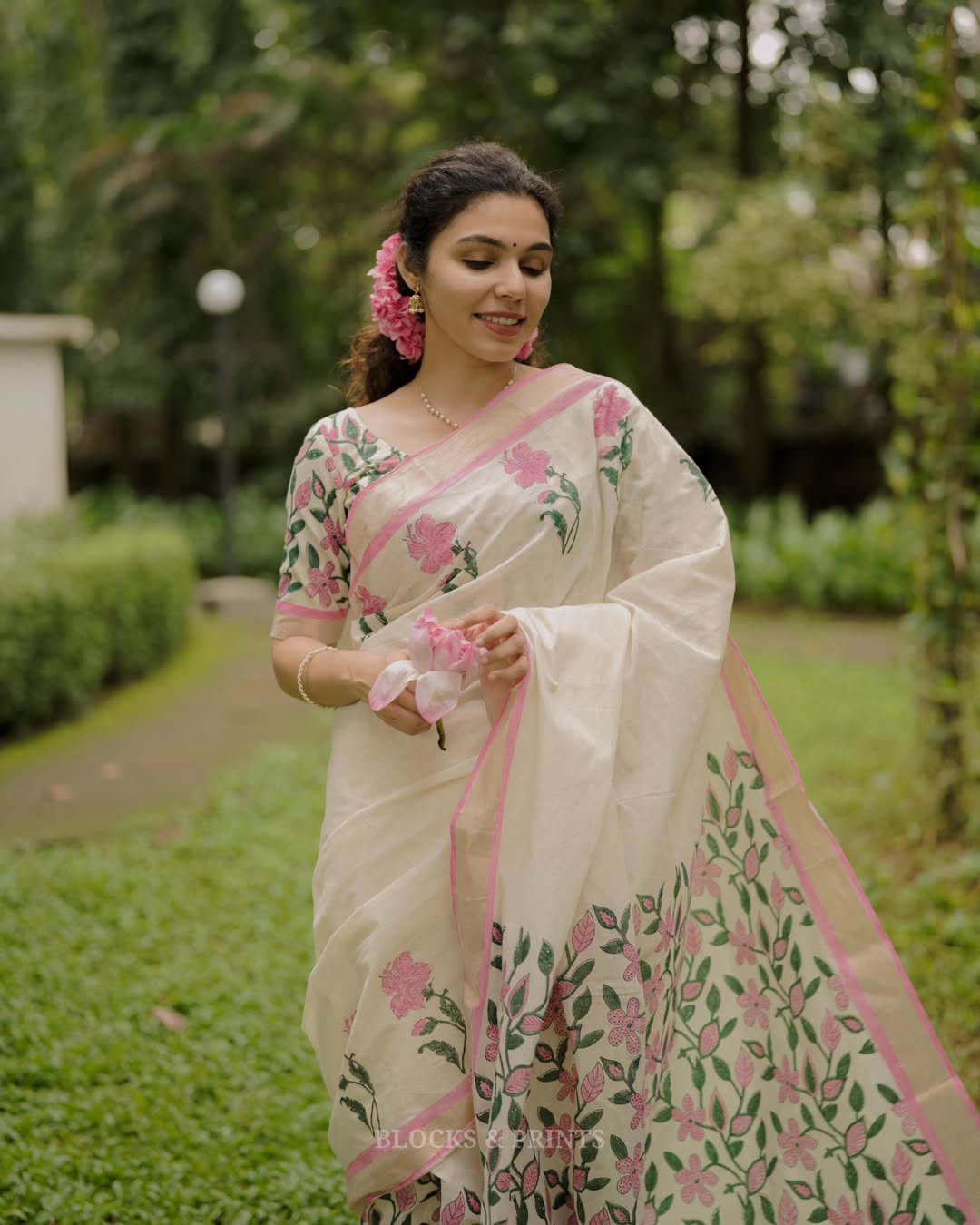 Cream Digital Print Original Japan Satin (Devsena satin)