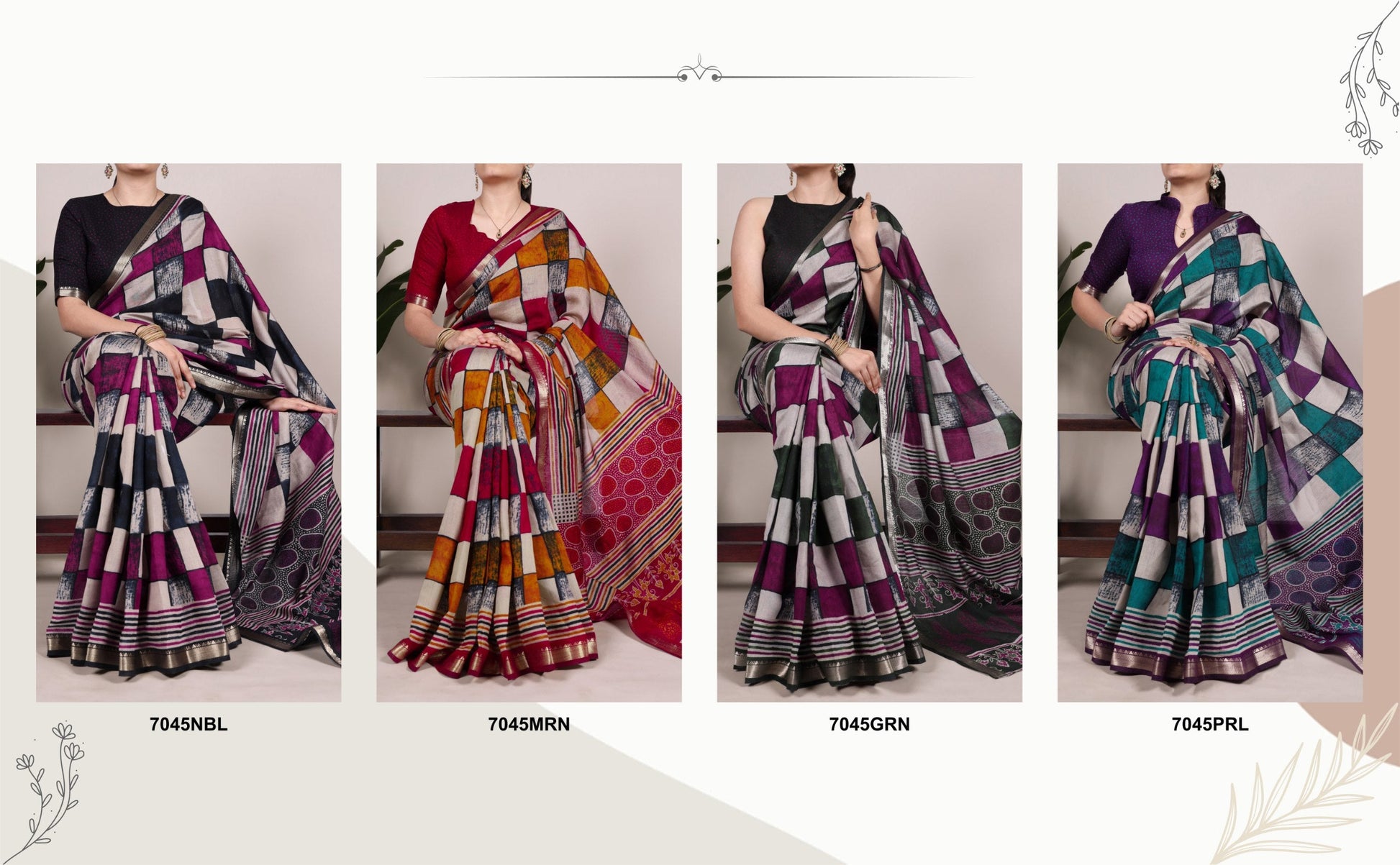 Digtial Printed Maroon Box Pattern With Temple Border Saree