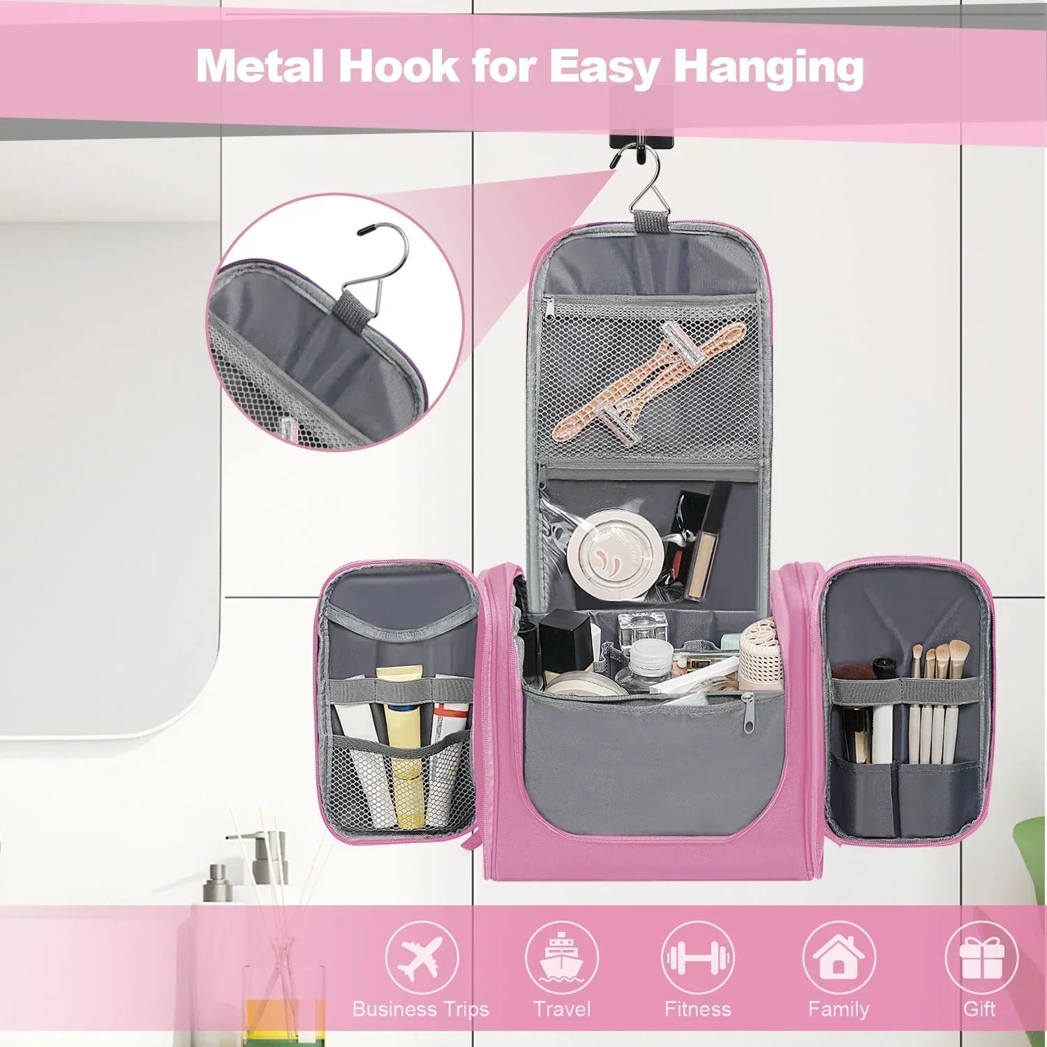 ✅ Use it as a makeup bag, dopp kit, bathroom organizer, or hygiene pouch. Ideal for business trips, vacations, gym visits, and outdoor activities. -