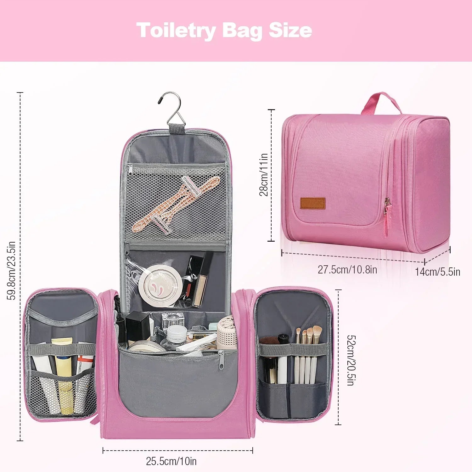 Uses: Toiletry bag, makeup pouch, shaving kit, travel organizer