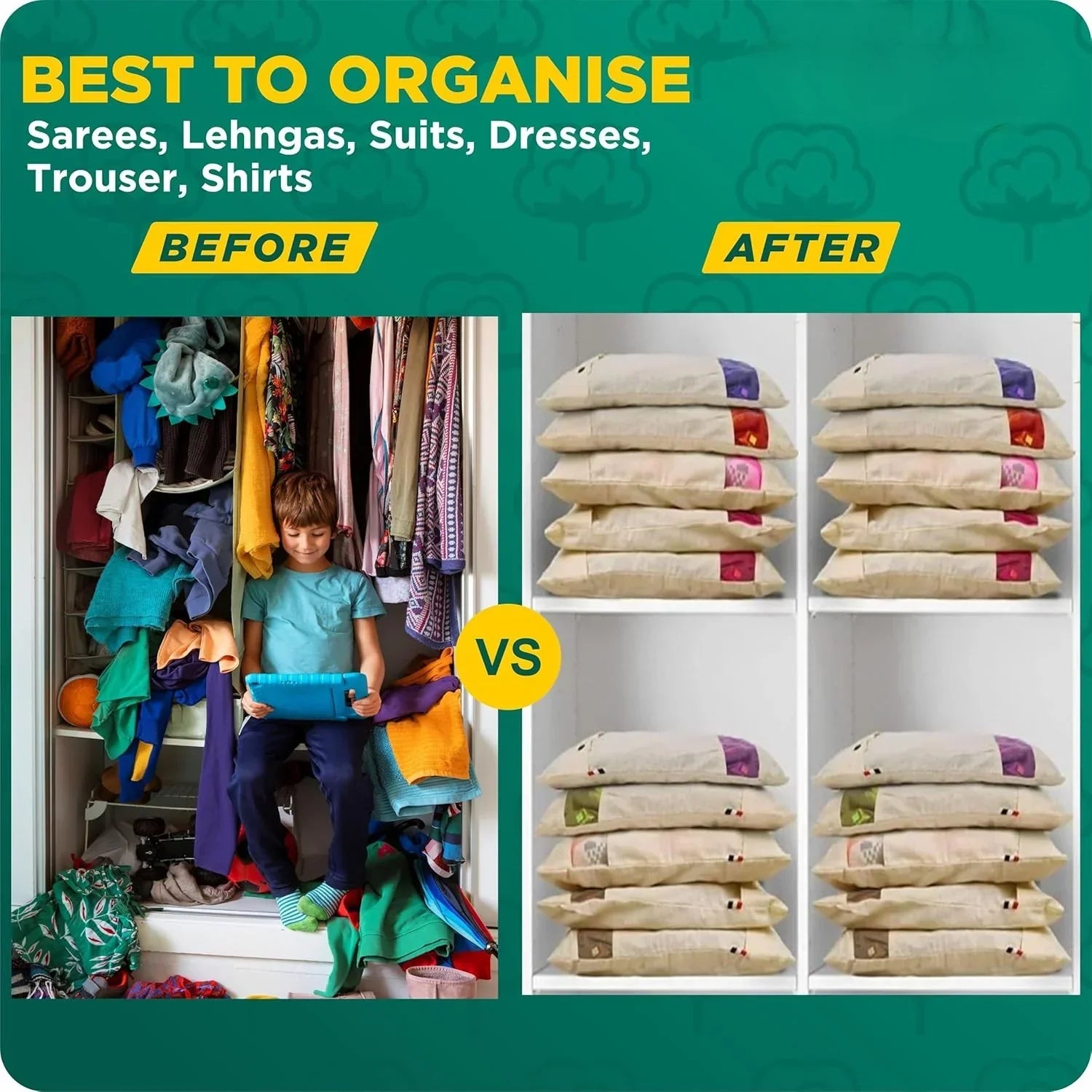 Protect your sarees from dust, dirt, and damage with breathable cotton covers, keeping them fresh and elegant over time