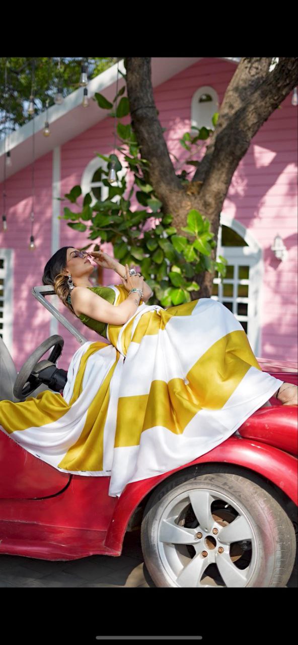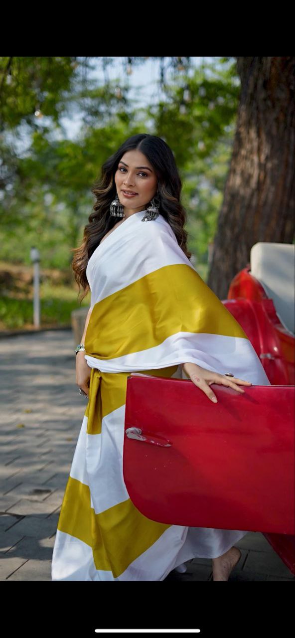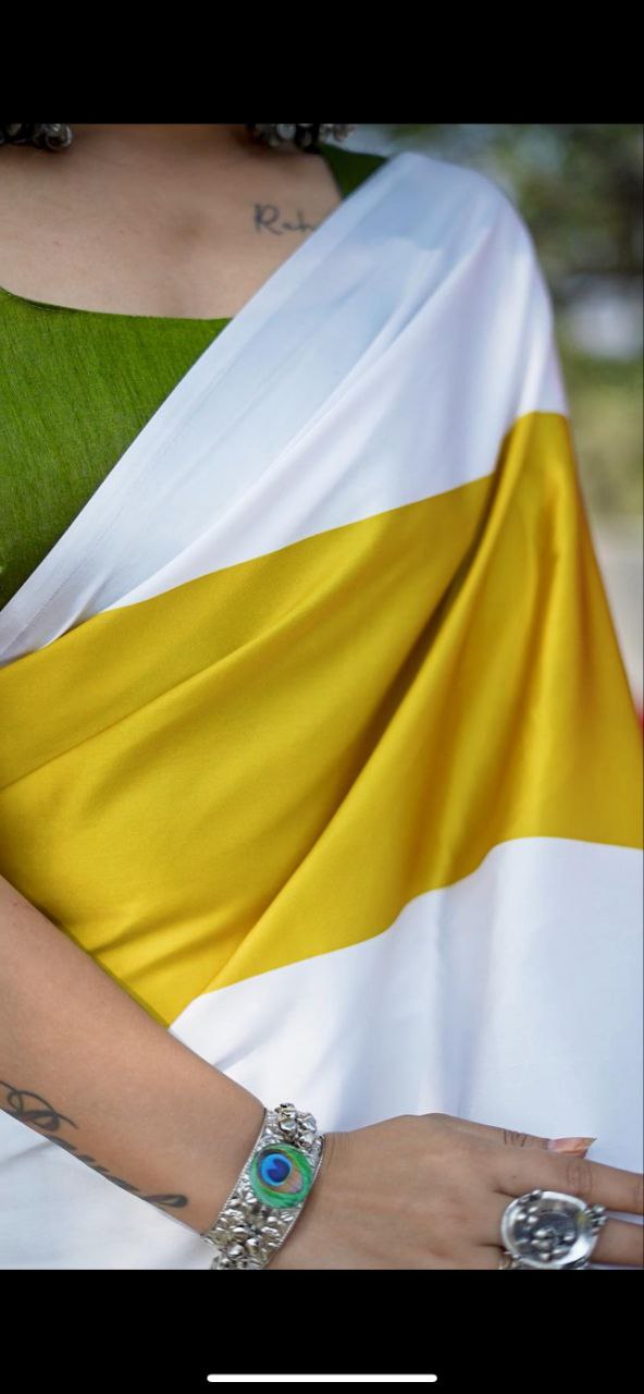White Musterd Green Line Digital Print Original Japan Satin (Devsena satin)